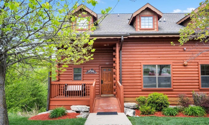 This two-bedroom plus loft cabin is a great option for families or groups of up to eight people. It has a rustic feel with modern amenities. You can relax by the seasonal fireplace or unwind on the private, screened-in balcony with a peaceful view of the natural Ozarks. Despite its secluded atmosphere, the cabin is conveniently located in the heart of Branson, just a few minutes away from shopping, shows, and entertainment.