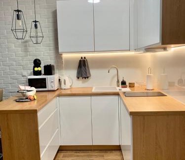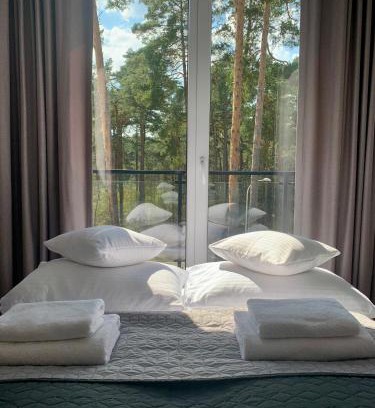 Offering garden views, REMAR - Apartamentai prie Necko Ežero in Augustów features accommodations, a garden, and a bar. This beachfront property offers access to a balcony. The accommodation offers an elevator and bicycle parking for guests. The units come with parquet floors and feature a fully equipped kitchen with a dishwasher, a dining area, a flat-screen TV, and a private bathroom with shower and a hair dryer. A microwave, a fridge, and stovetop are also featured, as well as a kettle. At the apartment complex, each unit comes with bed linen and towels. Guests may eat at the on-site family-friendly restaurant, which is open for dinner, lunch, brunch, and cocktails. Cycling and hiking can be enjoyed nearby, while a bicycle rental service and a private beach area are also available on-site. Augustow Train Station is 3 miles from the apartment, while Augustów Primeval Forest is 10 miles from the property. Olsztyn-Mazury Airport is 105 miles away, and the property offers a paid airport shuttle service.