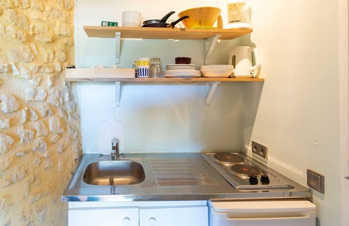- Behind the main open-plan space there is a kitchen, ideal for cooking for two, there are 2 hobs, a sink, fridge, toaster, and a Nespresso machine.