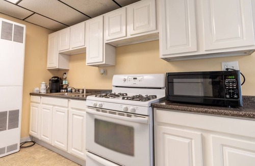 KITCHEN: Cooking basics, dishware/flatware, refrigerator, stove, microwave, Keurig coffee maker, K-cups