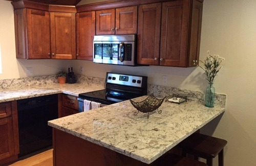 The newly remodeled kitchen (granite countertops, new cabinets, & updated stainless steel appliances) is well equipped with new cookware, new flatware, coffee maker, toaster, crockpot, blender, etc.