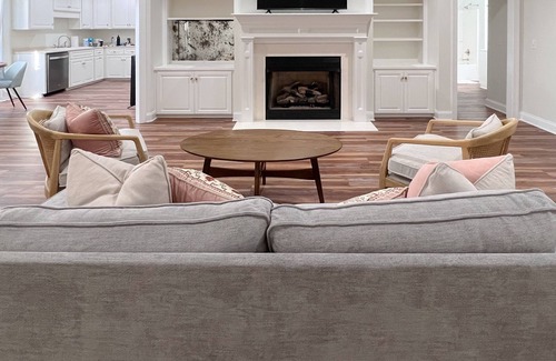 Cozy living area with decorative fireplace for relaxation and entertaining