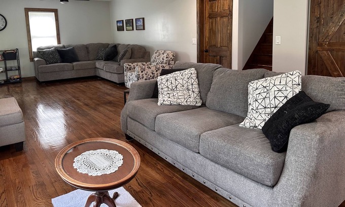 This is an open and airy farmhouse that is warm and welcoming. There is a large living space, 4 bedrooms, large kitchen and 2 full baths. This property was remodeled to comfortably sleep 12 guests with 7 beds and an additional futon. This is a great home for two families to share, bring the kids and grandparents or come share the space with family or friends. The rates are kept reasonable so families can afford a getaway to a beautiful place to create lifelong memories.