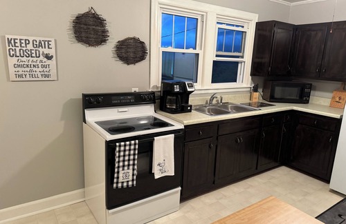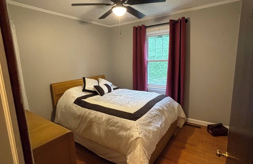 If you're looking for a simpler way of life nestled in the mountains, then Evvie's View is your perfect next get away. Renovated 1950s farmhouse, located on 30 acres, 8 miles from West Jefferson. Picturesque setting with vegetable garden and chickens. Magnificent views of Mount Jefferson from your front porch! Live like a local at this peaceful home and grounds that have been lovingly cared for by the same family since 1802. A stay at Evvie's View is the true Ashe county experience! Peaceful relaxing atmosphere but with all modern conveniences. Plenty of space to spread out and soak up all the mountains have to offer. The New River is at the end of the road, plenty of hiking opportunities. 30 acres and set off the quiet mountain road you can truly get away from it all and unwind, while still conveniently located. Original hardwood floors through out. The views from the porch can’t be overstated, many claim Evvie’s view is one of the best views of Mount Jefferson in the county.