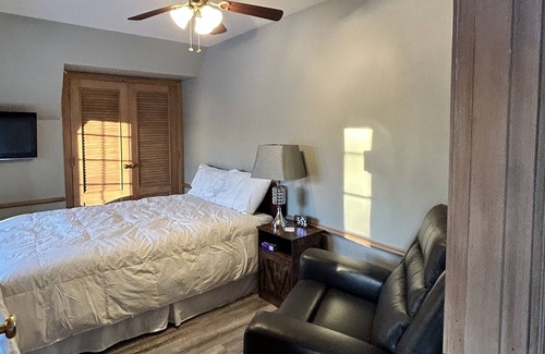 Beautiful remodeled French country suites, located in the heart of Shawnee. Across the street from the Shawnee country club, close to hospitals and the refinery. This beautiful suite would be idea for traveling nurses, doctors, refinery employees, or for anyone that just needs a nice place to stay. Each suite has wifi. Suite 3 has a queen bed, TV, desk, refrigerator, microwave, coffee maker and a full size bath with a shower. These suites are sure to be a home away from home.