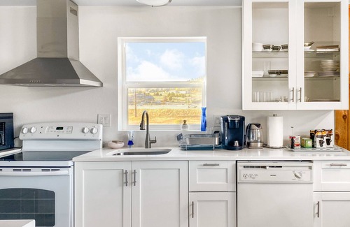 Keep it simple at this peaceful and centrally-located place. Nestled on 2 acres, this newly renovated home offers a spacious retreat. The bathroom and kitchen are both fully equipped for your comfort. With a short drive to the nearby shopping center, you'll have everything you need. Plus, it's just a 20-minute drive to the iconic Red Rocks, making this the perfect base for your adventures.