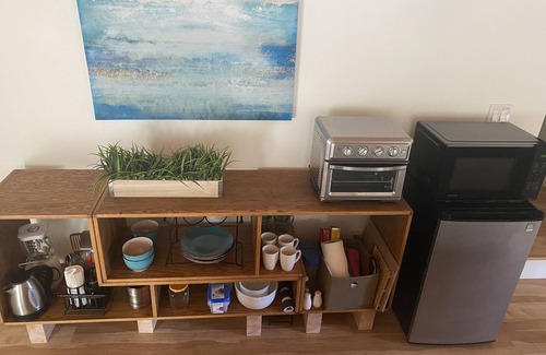 Please note that the rental has a small kitchenette with a microwave, toaster oven, sink and small refrigerator. Please note: there is no stovetop or built-in oven. Very nice well-behaved neutered/spayed adult dog and people welcome. No dogs under 1 year please. Steps from the golf course, this rental is in an excellent location, 5-10 minutes from restaurants and entertainment.