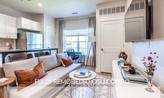 Welcome to our remodeled condo just a stone`s throw away from Boone Pickens Stadium! Enjoy the convenience of being only one block away from the excitement of game day while staying in a modern space. Take a dip in the pool, explore the town on our complimentary bikes, and rest easy knowing that parking is on us. Perfect for sports enthusiasts and travelers alike, book your stay now for a game day getaway you won`t forget!