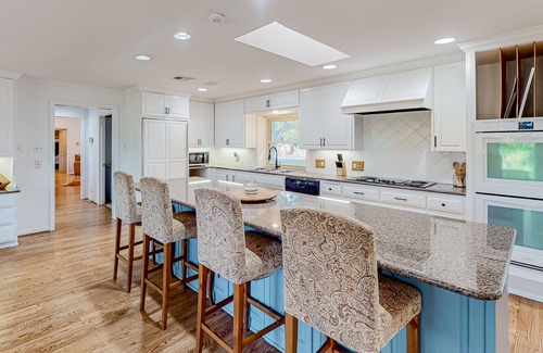 Inside, this air-conditioned home away from home boasts an airy living room with beautiful views of the river, an extensive sectional, a bar table, and a huge smart TV. This is a fantastic spot to gather with your loved ones, catch up with your favorite series, and create everlasting memories together. Prepare culinary masterpieces in the well-appointed, open kitchen that you can later enjoy at the adjacent dining table. Equipped with all the major appliances and essentials, cooking will be a breeze! The home includes a designated laundry room with a washer/dryer as well. The primary suite is spacious and enjoys a smart TV, access to the back patio, and a luxe en suite bath with two separate vanities, a shower, and a separate soaking tub.