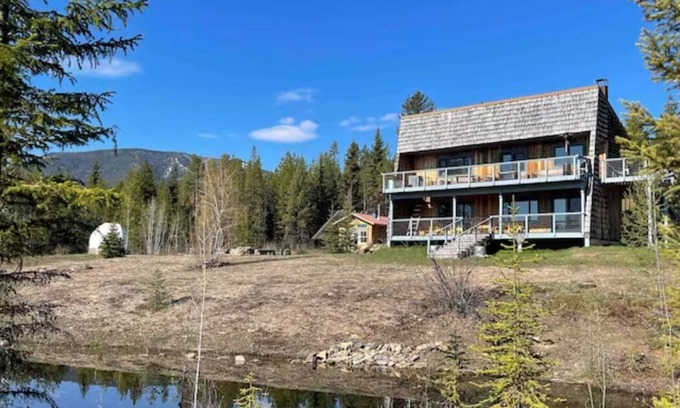 COZY REMOTE Lodge , GLACIER NATIONAL PARK MOUNTAIN VIEWS, LOVED BY 3 GENERATION FAMILIES, FLEXIBLE ACCOMODATION, OBSERVATORY, yet only 2.5 miles from the North Fork Park Entrance with access to Bowman and Kintla Lakes and 35 mins to Apgar and the Going to the Sun Road. Walk, bike or drive to the Polebridge Mercantile (bakery, pizza and rentals) and Saloon (often with live music). Explore the lightly used Flathead forest trails, hike to Look Out Towers or fish, swim or float the Flathead River and ponds and lakes. Great for ebikes