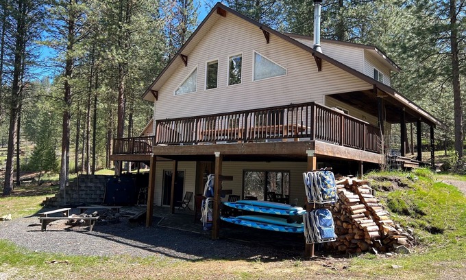 If you know Lake Roosevelt, you know what a hidden gem it is. Unpopulated and underdeveloped, this beautiful lake stretches from Grand Coulee dam all the way into Canada. Endless beaches surround this river, dotted by an occasional home. This home was built with all the conveniences and amenities you'll need, so you just get to relax. Nestled in ten acres of secluded woods, the deer and wild turkeys race you down to the water. The long Summer days are spent cooling down in the lake any way you desire. In the evening, sit back on the huge deck and barbecue as the sun sets over the water. A perfect getaway in the spring and fall to enjoy the solitude that nature brings. The full kitchen and sleeping arrangements accommodate fifteen people or more. The rec room and games will provide fun for all through the evening. A new Starlink internet lets you conduct business with speed!