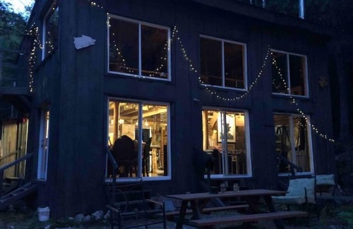 This beloved post and beam cabin is custom built by myself and my wife on our honeymoon with pine, cedar and spruce from our lands in an open concept style for comfort, convenience, beauty and relaxation. The wall of sliding doors and windows brings the outside in. The open loft circulates the aromas of the hemlock, pine and birch forest and the coffee made in the morning.