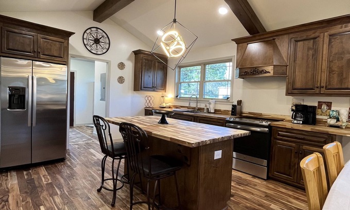 Welcome to the Greenhouse on East Jones Ave. This newly renovated home is just a short walk away from downtown Pickens, offering a cozy and convenient stay. Enjoy all the comfortable living spaces this 3 bedroom 2 bathroom home has to offer like the fully equipped kitchen, covered front porch, back patio, indoor/outdoor dining areas and the laundry room. Being within walking distance of downtown Pickens and all of its amenities will make your stay a breeze.