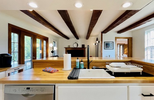 The Goldfinch is a 19th century farmhouse newly remodeled into a bright and modern country getaway. The house sits at the base of an open hillside, surrounded by fields and woods, with its own private swimming pond. Whether you're seeking a base for viewing the brilliant foliage in the fall, cross-country or downhill skiing in the winter, or hiking, biking or swimming in the summer -- or you just want a relaxing retreat amidst natural beauty -- the Goldfinch offers you a private, peaceful escape to a secluded slice of central Vermont's beautiful hill country.