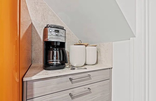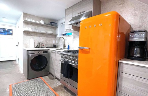 You'll have the entire apartment to yourself—nearly 800 square feet of stylish, historic charm. With an open-concept living and dining area, plus a fully stocked kitchen, this retreat is perfect for both relaxing and work.
