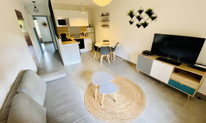 Renovated 2-room apartment with balcony and private parking is located in Grand Sud. Renovated 2-room apartment with balcony and private parking provides accommodation, featuring Guest Services, Child Friendly, Hot Tub, among other amenities. This Apartment features Guest Services, Child Friendly, Hot Tub, to make your stay a comfortable one.