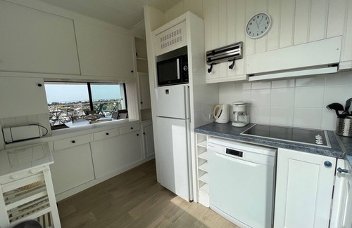 Renovated apartment with private tennis, parking and sea view is located in Jullouville. Renovated apartment with private tennis, parking and sea view provides accommodation, featuring Internet, Kitchen, TV, among other amenities. This Apartment features Internet, Kitchen, TV, to make your stay a comfortable one.
