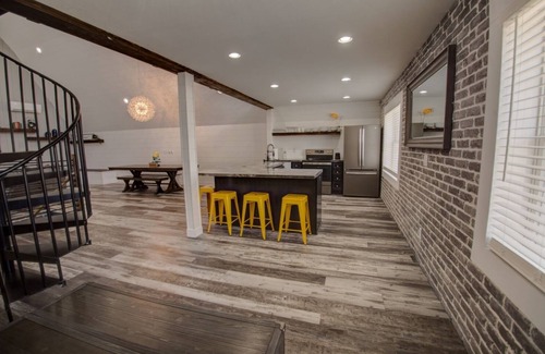 Live your best life with a stay you won't forget! Originally built in the 1920's, this recently updated barn sleeps 13 & features full kitchen, coffee bar, spiral staircase to access loft overlooking great room with floor to ceiling stone fireplace, game room with wet bar, two 70" TV's, 2 bathrooms, laundry with washer & dryer, office space, free wi-fi, & off street parking. Conveniently located a mere block from the mighty Mississippi, boat landing, & only 10 min to La Crosse & 15 min to Winona!