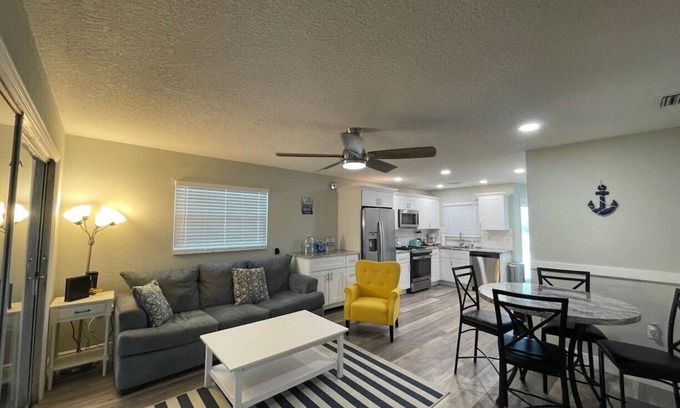 Come and relax at our newly renovated home, featuring many of fun options for entertainment. There are comfortable living conditions indoors and outdoors, with your very own personal yard and dock. There are 4 kayaks waiting for you to go and explore the canal! On the patio, there is a lounging spot with lounge chairs and a grill for you to enjoy a barbecue. Children are allowed with parent supervision.
