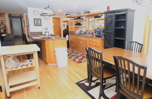Accommodating up to 6 guests (with an additional 2 on the new Queen sofa sleeper), this home features three bedrooms and two baths. The primary bedroom offers a comfortable King bed with an ensuite bathroom, while another bedroom boasts a King bed and patio doors leading to the deck. A third bedroom features two twin beds, perfect for families or groups.