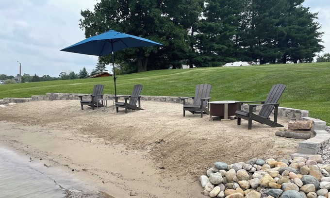 Recently renovated cape style lake cottage on all-sports lake in quiet Lake Diane community.100' of soft sandy beach. 2 fire pits for the cooler nights, Breeo on the beach and fire table on the top deck. Large yard for outdoor activities. Paddle board and 2-person kayak. Indoor activities such as ping pong, pool, board games, Wii and darts. Fully stocked kitchen. Blackstone. Walk to the lakeside park. Waterfront dining on the weekends. Public boat launch. Dock space available for you to bring your own boat in the summer. Cottage sleeps up to 14 people. BR-1: 1 queen bed, BR-2: 1 queen bed, BR-3: 1 queen bed with twin day bed and trundle, bonus area with 1 queen futon, 1 full size pull-out, 1 queen size pull-out. Please no smoking or pets.