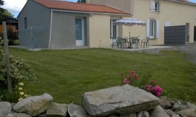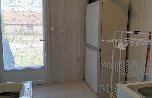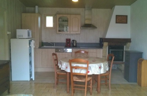 Renovated old house, adjoining the owner's home, located on a working farm (rabbit breeding, cereals). Ground floor: living room/lounge/kitchen, shower room/toilet, laundry room, 2 bedrooms (1 double bed) (2 single beds). Wi-Fi. Private space of 100 m² with terrace (garden furniture, barbecue). 1500 m² furnished common area and park with chickens and goats. Optional extras: End-of-stay cleaning: €60/stay; Fitted sheet and duvet cover rental for 1 or 2 people: €10/bed/stay.