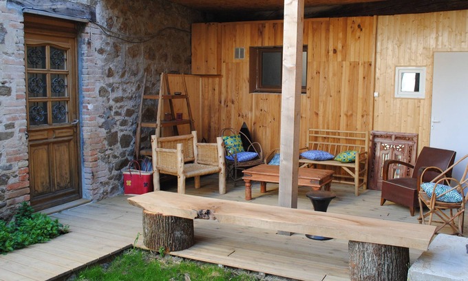 The house is quiet on the edge of the stream. It was renovated last year. There are three bedrooms, a kitchen, a dining room, a living room, a bathroom and a covered terrace overlooking and an inner courtyard. The courtyard is closed by a gate. The house is 90 m² + 15 m² covered terrace. There are two rooms with a double bed and a room with two beds or 6 beds. The living room can eventually accommodate two additional people.