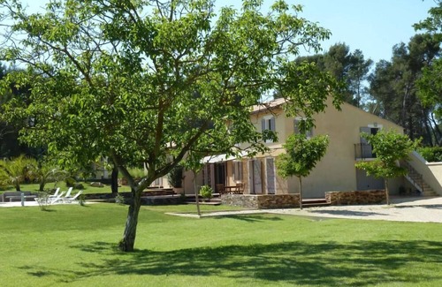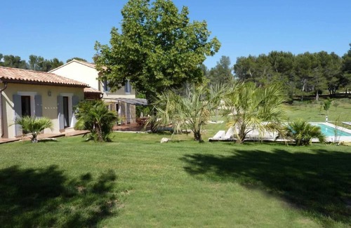 halfway between Aix en Provence and Marseille, in the countryside, quiet, but close to the commercial area of Plan de Campagne, fully tastefully renovated house with landscaped grounds of 8000m² and a large very nice pool.