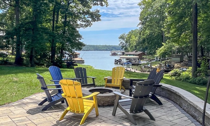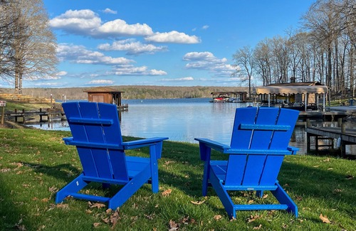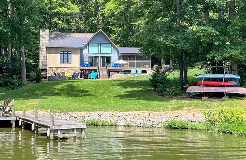 Located on Lake Anna across from the state park on a 1 acre lot in a quiet cove. This newly renovated four bedroom, three bath home sleeps 9 people features an eat in kitchen plus a large screened porch with a sitting area as well as a dining area. On the main level, the master bedroom has a king size bed and a private bath. Also on the main level is another room with a king size bed and a room with a duo bunk bed (double on the bottom, single on top) with a trundle bed pull out. There is a bath located next to these two bedrooms. Upstairs there is a suite with a king bed and queen pull out sofa and a private bath. The large family room a large sectional for gatherings and a large window for lake views. Gather for movie night or enjoy a book while relaxing in a chair by the window while taking in the views. Brand new patio with fire pit added spring of 2021! Enjoy a fire, roast some s'mores and relax!