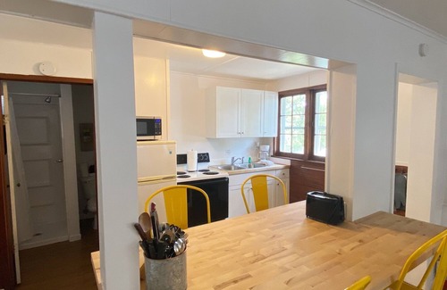 The kitchenette has all the necessities for preparing meals and includes a large bar area with dining seats for 4 guests.