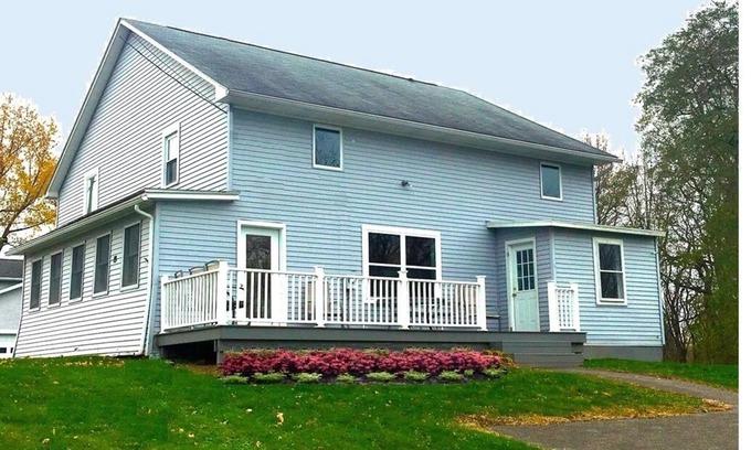 Recent;y renovated farmhouse located in The Cottages At Troutburg resort community! Enjoy summertime fun on the banks of Lake Ontario. This renovated farmhouse features 4 bedrooms plus den and three full baths, large family sized dining room and living rooms. Brand new kitchen with white cabinets, new plank flooring and carpeting throughout. Two bedrooms and two full baths on first floor with two bedrooms, an additional full bath and den on level two make this the perfect home to share with family and friends. Great water views from new deck and many rooms. Community has private beach, lakeside pool, tennis & basketball courts, fishing pier, clubhouse, lodge and playground. Renter brings own linens. Courtesy bikes and kayaks available. Check in on Saturdays.