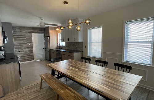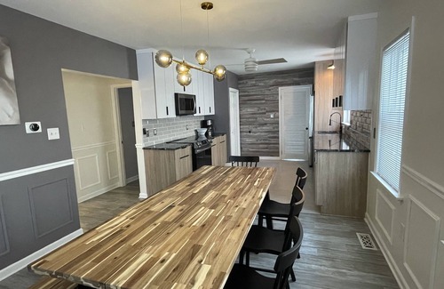 Flat-screen TVs in bedrooms and the living room. High-speed internet, YouTubeTV, ROKU streaming player. The Kitchen has an electric stove, microwave, coffeemakers, Keurig, pots & pans, dishware, silverware, glassware, blender, and refrigerator. Central air/gas heat, ceiling fans in all rooms, except kids' room for safety issues, washer/dryer, assigned parking at the rear entrance, and so much more!