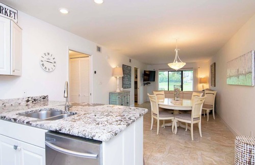 1st Floor 2br-2ba unit with lake and golf course views. Unit has been completely remodeled with great finishes. Large open floor plan with large kitchen flowing into dining and living rooms make this a special place for family or that perfect golf trip with friends.