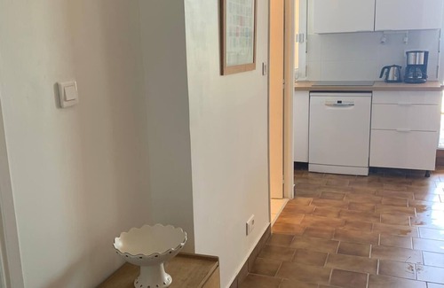 Small new kitchen. Large new fridge. kitchen kit (all covered and usual accessories, olive oil, vinegar, salt, pepper, sugar, herbs ...) provided, other possible products to suit your needs. Nespresso coffee machine and standard (one set of 10 capsules offered per week), toaster, kettle, micro wave oven (to bake a pie, pizza or cook a gratin or meat, for example), etc ...
