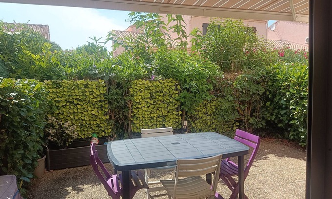 Argelès-sur-Mer, on the ground floor of a flower-filled residence, renovated and well-equipped one-bedroom apartment for 4 people: