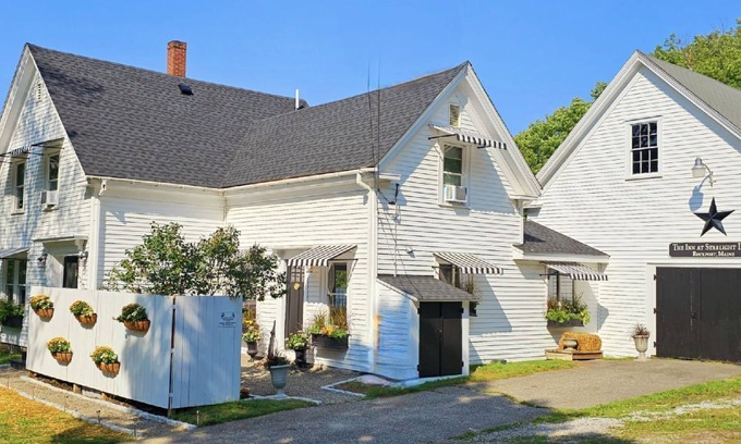 Three beautiful en suites all renovated and beautifully decorated. Full state of the art chef's kitchen, living room with large television and electric fireplace, dining room and private courtyard with grill and lush lawn with community firepit. Two bedrooms are upstairs and one is downstairs. Use of hotel amenities next door includes seasonal heated pool and second community firepit. Two night minimum. House cleaning fee is $150. One pet dog is allowed in the downstairs area only with a $35 post-stay cleaning fee. This is a no smoking property. Explore Rockland, Rockport and Camden and so much more.