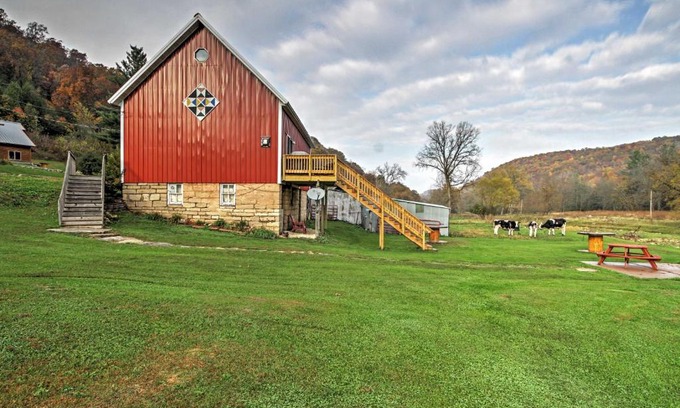 Renovated Winona Barn with 2 Decks on 80-Acre Lot! is set in Nodine, 35 km from La Crosse Center, 37 km from University of Wisconsin-La Crosse, and 47 km from Hamlin Garland Homestead. This holiday home is 12 km from Ridgeway and 13 km from New Hartford. With free WiFi, this holiday home offers a cable flat-screen TV and a kitchen with a fridge and oven. Towels and bed linen are featured in the holiday home. Pickwick is 5.4 km from the holiday home, while Lamoille is 8.8 km away. The nearest airport is La Crosse Municipal Airport, 32 km from Renovated Winona Barn with 2 Decks on 80-Acre Lot!.