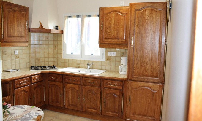 Apartment located on the ground floor of 25 m2 for 2persons, including 1 bedroom with 1 bed 140. Bathroom with shower, toilet, washing machine, sink, kitchen very well equipped, fridge freezer, microwave, hob, cafeteria, TV.Terrace, with table and chairs and barbecue, fully enclosed garden, parking near the apartment. Located in a quiet location 250 meters from the national road, 1,5km from shops, 3km from the beach