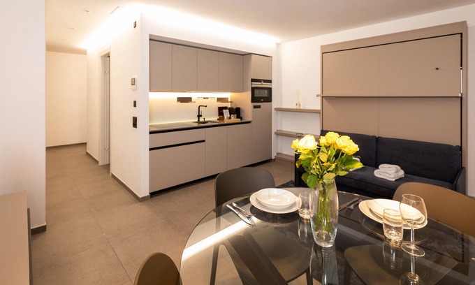 This contemporary studio is on the second floor (with lift) of a modern residence in the town of Lumino. It sleeps up to 4 people and makes an ideal base for a holiday or for a business trip in the region of Ticino.