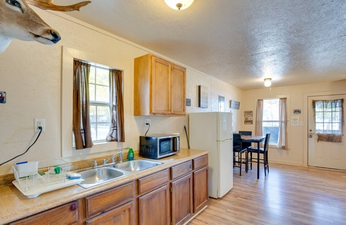 Immerse yourself in camp life when you book your next adventure at this studio cabin in Kerens! The 1-bathroom vacation rental is nestled amongst towering trees and offers ample outdoor activities to fill your day. Spend a day on the water, take a guided hunting tour, or reel in your catch of the day on the 150-foot fishing pier. At the end of the day, gather around the fire pit with hot cocoa in hand, or get cozy inside and whip up a quick meal in the kitchenette. Waterfront bliss awaits!