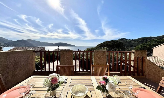 Accommodation: Located 450m walk from the Gulf of Lava beach, this 1970s apartment, of approximately 70m2, benefits from an ideal location for your vacation on the island of beauty with a large sunny terrace with sea view. The apartment is composed as follows: an air-conditioned living-dining room with convertible sofa (type BZ), an independent equipped kitchen opening onto the terrace, a sleeping area with 2 bedrooms (sleeps 140), a renovated bathroom new with large shower, separate toilet. The advantage of this apartment: its location close to the beach, a private parking space in front of the accommodation. IMPORTANT INFORMATION: End-of-stay cleaning, bed linen and towels are included in the rate. Only kitchen towels are not provided. Services included: End of stay cleaning T3 Pack sheets 140/160 + towels