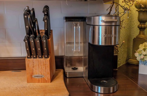 - A large, well-stocked kitchen on the ground floor (utensils, dishes, oil, condiments, Keurig with pods included, etc.).