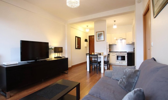 Beautiful apartment located on the 5th floor with elevator of a luxury residence, 100m from the city center of Bayonne, facing the Adour river. Equipped kitchen area (induction hob, microwave, fridge-freezer), dining area, lounge. 1 bedroom (1 double bed). Shower room (shower 120x80, washer-dryer). WC. City gas heating included. Sheets provided, possibility to rent towels. Possibility additional person with sleeping in sofa. Internet access. Balcony with flowers. Garden Lounge. 1 parking space in the covered and secure garage of the residence.