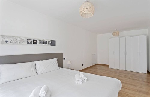 The apartment opens onto the living area with an open floor plan kitchen equipped with induction burners, hood, refrigerator, freezer, dishwasher, combination microwave, toaster, kettle, and a dining table. There is also a sofa that becomes a double bed and a 42” television. The large bedroom has a wardrobe and 2 pull-out single beds that can accommodate up to 4 guests. Both the bedroom and the living room have French doors that open onto the condominium garden. The bathroom (no window) is equipped with a ventilation system and shower and is also adequate for those with reduced mobility.