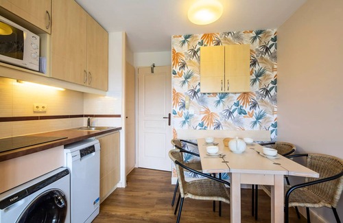 Equipment: Characteristics of the holiday rental :Apartment 2 rooms 4 people.Located on the 2nd floor without elevator.South facing terrace with sea and golf views.Fully equipped kitchen : large refrigerator with freezer space, induction hob, microwave, dishwasher, coffee makers (including Senseo), toaster, kettle, dishes and cutlery, washing machine.Equipment:TV, Wifi, safe, washing machine