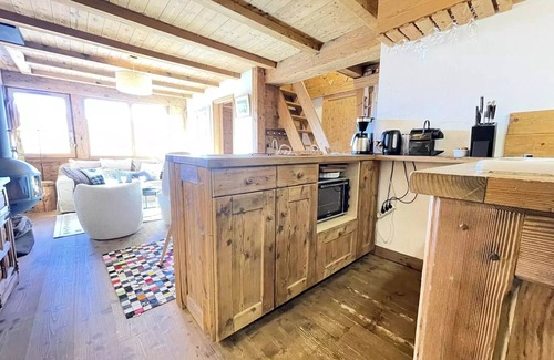 Accommodation: Apartment BuissonSuperb apartment in Savoyard style, you will appreciate its location, close to the slopes and its proximity to the village center. With a surface of 54 m2, it is perfect to accommodate four people, possible up to 6. Description: - Living room with TV and decorative fireplace.- Open kitchen on living room: 4 induction plates, refrigerator with freezer, oven, dishwasher.- Bedding: two double bedrooms (2x140), a mezzanine with 2 single beds (2x90 - children's beds). Bed linen equipped with duvets and pillows.- Mezzanine with TV, playground and night corner with two children sleeping.- Bathroom: a bathroom with shower common to both bedrooms, a towel dryer - Separate toilets* Baby equipment: bed and bath* Large west balcony* Ski/ cave compartment with washing machine* Covered parking #13 *Pets not accepted *Non smoking accommodationOUR NOTICE: Functional and well equipped apartment.Additional services:- End of stay cleaning service: CATEGORY D (on request and subject to availability),- Rental of linen,- Booking with reduction of your ski passes,- Baby cot and high chair loan, stroller rental (on request and subject to availability),