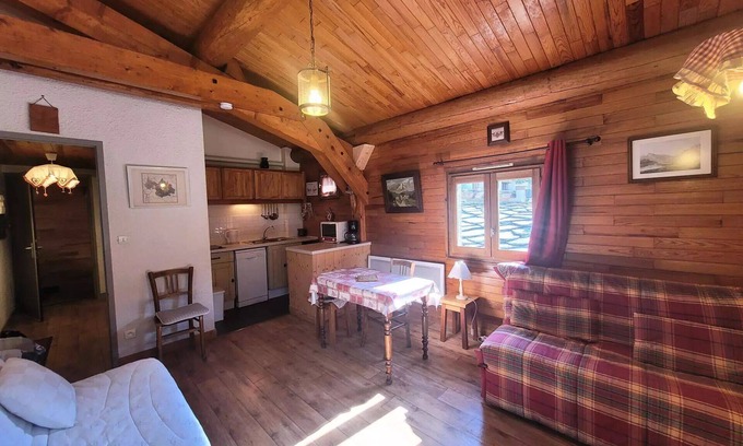Details: Near airport : Nice-Côte D'Azur Airport #NCE (190.3 km), Malpensa International Airport #MXP (188.1 km), Turin Airport #TRN (68.8 km), Geneva International Airport Cointrin #GVA (142.0 km) Deposit (in euros) : 300 Surface (m²) : 26 Dishwasher Wireless Television Microwave oven Balcony Distance Tracks : 400 metres Distance Ski School : 600 metres kettle Number of pieces : 1 Number of bedrooms Number of cabins Number of double bed : 2 Number of single beds Number of toilets Number of bathroom : 1 Floor Number of stars : 2 Exposure : South Pets Allowed Fondue machine Raclette machine Cooked : 1 Heating : 1 Dishes and cutlery : 1 Elevator : 1 Coffee maker Ironing board and iron