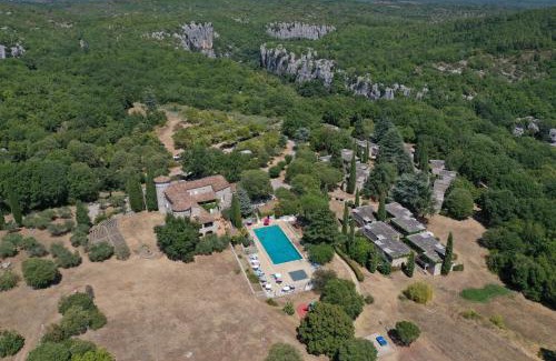 Located in the national park of Cévennes in the Ardèche department,, Accommodations of Residence Vacances Bleues Lou Castel was built around the castle by renowned architects, Andreau and Parrat. Their desire was for the 94 dwellings to blend into nature, in particular thanks to flat roofs and vegetation. It is successful: from the road or the paths, we only see the towers of the castle which mingle with the tall trees.