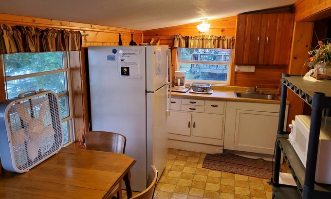 Welcome to Island Lake! This 2-bedroom cabin comes fully furnished with all of the kitchen utensils you may need. (Bring your towels and pillows.) The cabin is situated right next to our boat landing and swimming dock. Island Lake is a 3200-acre lake that is home to several species of fish. Take in the breathtaking, unobstructed views of the lake from the dining room or patio.