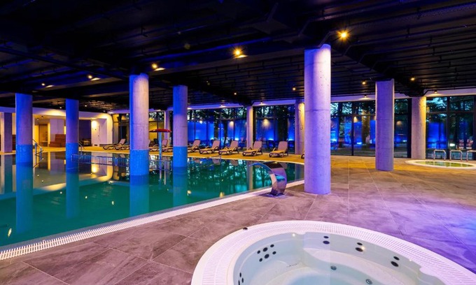 Located in Jarosławiec, a 5-minute walk from Jarosławiec Beach, Resort Król Plaza Spa & Wellness provides accommodations with a bar and private parking. Providing a restaurant, the property also features a fitness center, as well as an indoor pool and a sauna. The property has a hot tub, entertainment staff and a kids' club. At the resort, each room includes a closet. Complete with a private bathroom equipped with a shower and a hairdryer, guest rooms at Resort Król Plaza Spa & Wellness have a flat-screen TV and air conditioning, and selected rooms have a terrace. All guest rooms will provide guests with a fridge. A buffet, continental or vegetarian breakfast is available at the property. At the accommodation guests are welcome to use a Turkish bath. You can play pool and table tennis at Resort Król Plaza Spa & Wellness. The resort can conveniently provide information at the reception to help guests to get around the area. Jaroslawiec Aquapark is a 11-minute walk from Resort Król Plaza Spa & Wellness, while Dukes of Pomerania Castle is 12 miles away. Gdańsk Lech Wałęsa Airport is 96 miles from the property.